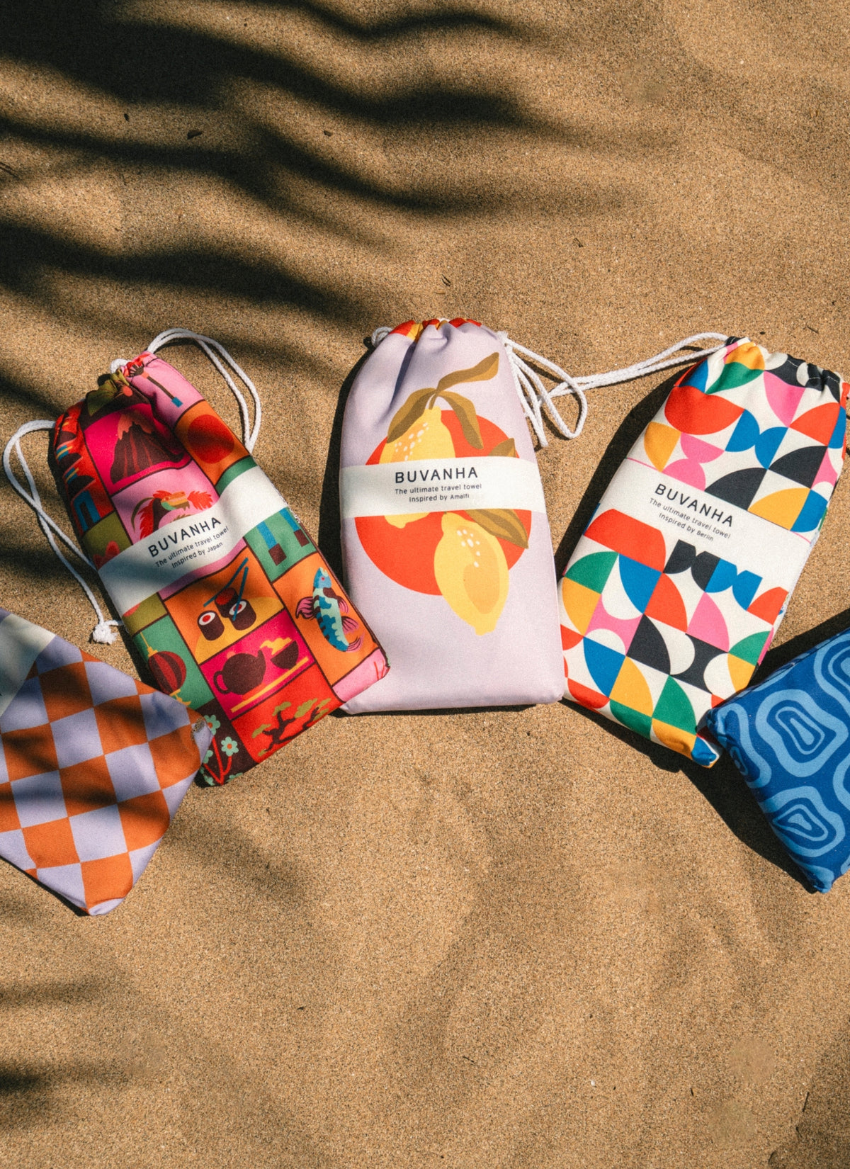 Een goede reishanddoek moet niet alleen functioneel zijn. Hij moet je ook het gevoel geven dat je hem ergens mee naartoe wilt nemen. Vanaf dag één werkte Siebe samen met designer Vera Smits. De klik was er meteen: Vera snapte de vibe van Buvanha. Dat ze ook nog eens in dezelfde straat als Siebe bleek te wonen, voelde als een teken. Ze begreep daarnaast wat hij voor ogen had: reisbestemmingen als inspiratie, kleur als emotie en design als herinnering aan je mooiste vakantie. Met haar kenmerkende kleurrijke stijl en liefde voor reizen vertaalt ze die wereld naar elk ontwerp. Elke Buvanha-reishanddoek draagt een naam. Australia. Marrakech. Kyoto. Curaçao. Niet zomaar prints, maar ontwerpen die je terugbrengen naar dat ultieme gevoel van vrijheid.