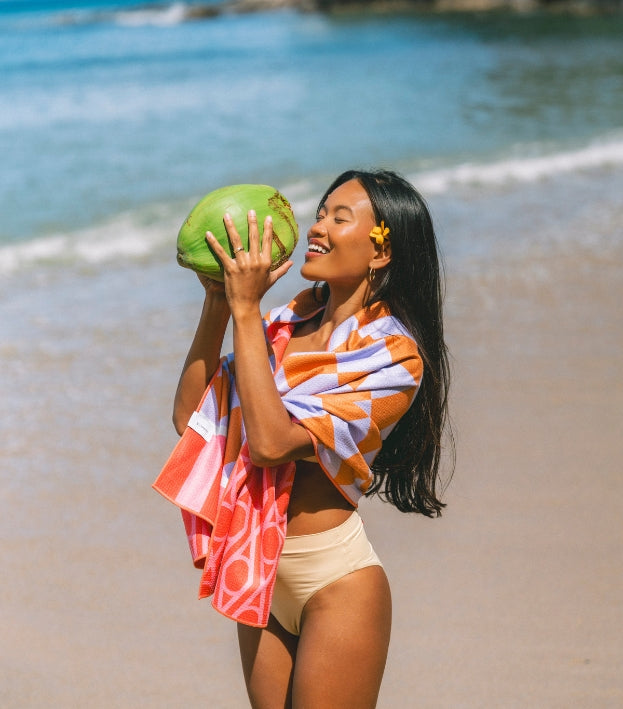 Een reishanddoek gemaakt van gerecyclede plastic flessen. Dat klinkt misschien verrassend, maar het is precies waar we trots op zijn. Eerst worden plastic flessen, die aan het eind van hun levenscyclus zijn, verzameld en grondig schoongemaakt. Vervolgens worden ze verwerkt tot kleine kralen, die gesmolten en omgezet worden in draad. Met dat draad weven wij onze Buvanha reishanddoeken. Wij geloven dat duurzamer produceren hand in hand kan gaan met functionaliteit, stijl en comfort. Niet als compromis, maar als standaard.